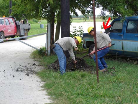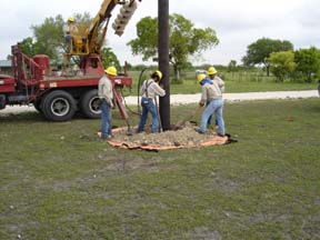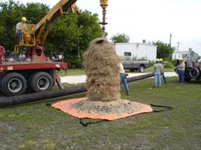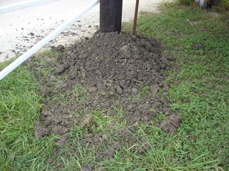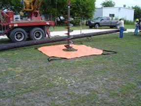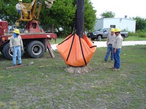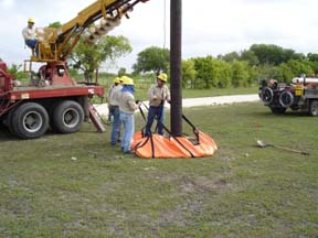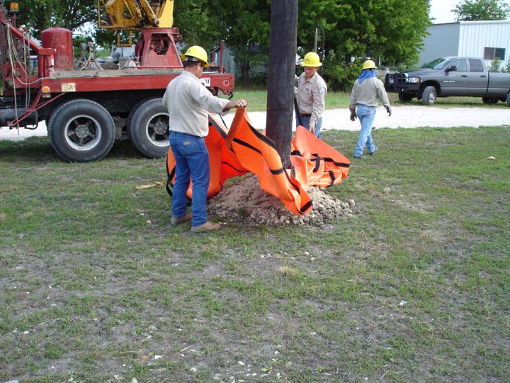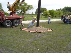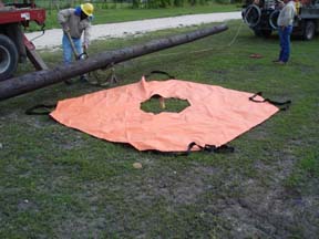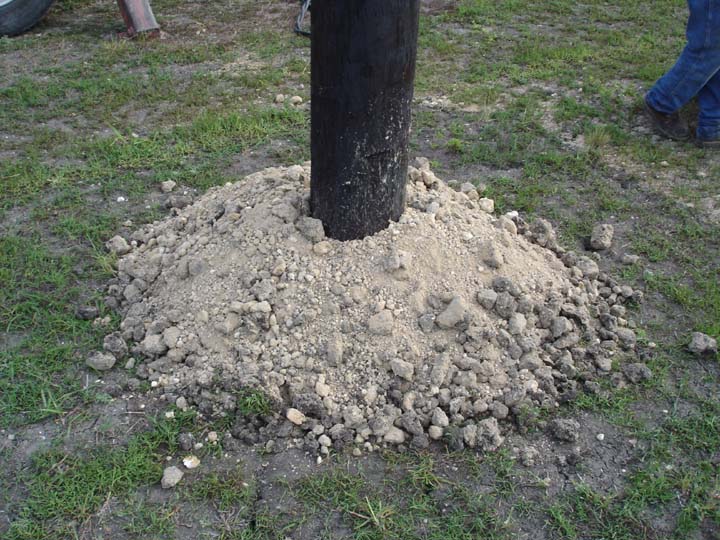 Pack dirt around pole Hook Dirt Skirt� to truck's winch